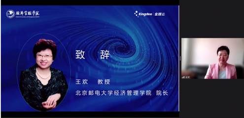 会议开幕式由张晓航教授主持,在致辞环节,王欢院长充分肯定了此次直播为校企之间学术交流、人才培养搭建了桥梁,促进了产学研一体化的发展。金蝶中国张振坤副总裁发表致辞并预祝研讨会圆满成功。上午场的主题演讲中,吕廷杰教授从数字经济的本质是智能经济角度阐述了数字化转型催生企业成长新动能、新业态的观点。吕教授认为趋势大于优势,数字化转型是今后十年的大趋势!金蝶中国助理总裁林法成作为企业嘉宾代表,分享了企业数字化转型的经验,提出数字化时代任何企业都不能忽视数字带来的力量和竞争优势。山东大学管理学院张玉明教授提出,中小企业的核心问题是严重的资源约束和成长能力不足,共享经济可以化解中小企业资源约束,而共享经济的驱动需要依靠信息技术。北京工商大学前副校长、中国商业会计学会会长谢志华教授做压轴演讲,提出从工业化时代向数字化时代迈进,经济发展的动力是从分工到整合,经济运行的模式是个性化、多样化、多变化与供给侧结构性改革。