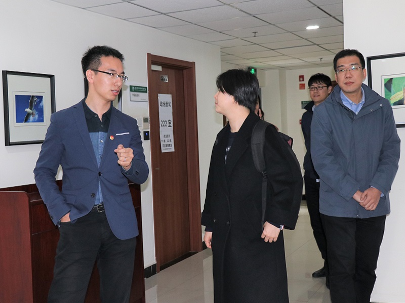 在校团委书记许飞老师、校团委办公室主任汤思源老师陪同下,团中央社会联络部袁旦老师来到冰球突破mg正规官网。康晓老师首先对袁老师到我院调研指导表示热烈欢迎,带领参观我院经管楼的基本建设情况并介绍学院特色。随后,一行人在经管楼105会议室开展共青团工作座谈。