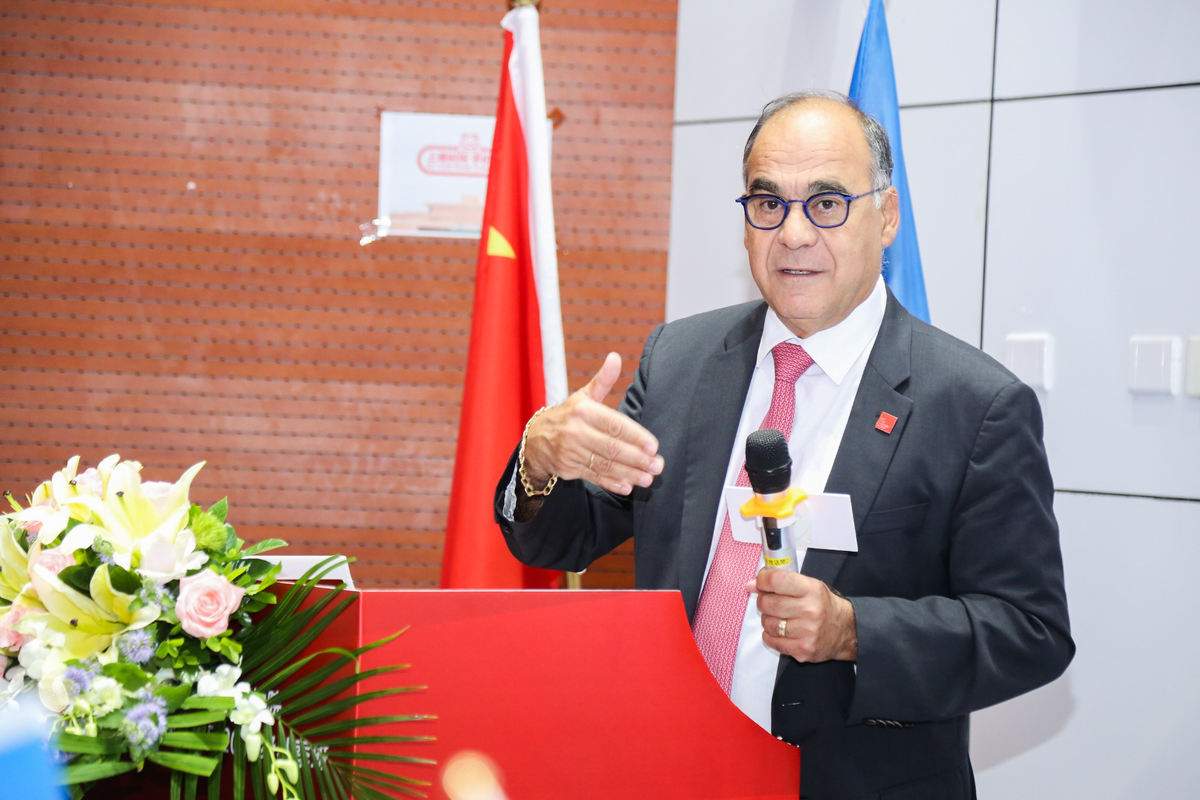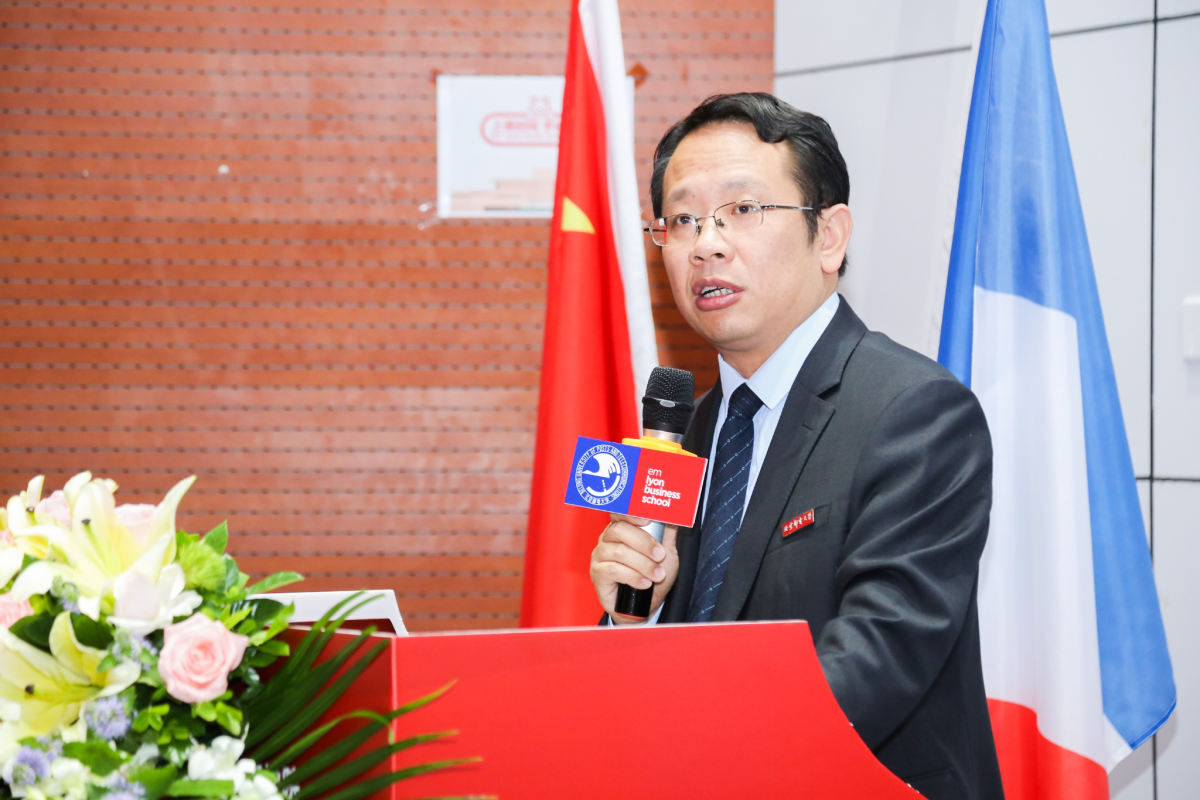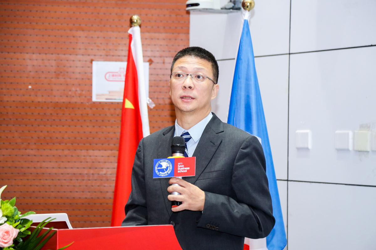 法国里昂商学院副校长Tugrul ATAMER教授致辞,他首先向在场的各位嘉宾致以亲切问候,并对2019级EMBA新生表示热烈的祝贺。Tugrul ATAMER教授对近年来冰球突破mg正规官网与法国里昂商学院两校日益深厚的友谊感到欣慰。他向大家简要介绍了里昂商学院国际化与数字化转型创新两大战略。里昂商学院这所古老且极富创新性的国际顶尖商学院,在商业领域推行国际化教育,希望把科学技术与管理精神合二为一,旨在与世界各地合作,打造创客先锋。Tugrul ATAMER教授表示,当前人类面临历史上最重要的、宏大的变革时期,世界需要能捕捉时代变革信号,抓住机遇,通过创新创造新价值的创客先锋。他希望在当代,在座的各位精英管理者能发明出一种可持续的、科学的生活方式,充分展现企业家精神的同时服务世界,最后祝愿大家未来两年的学习生涯顺利。