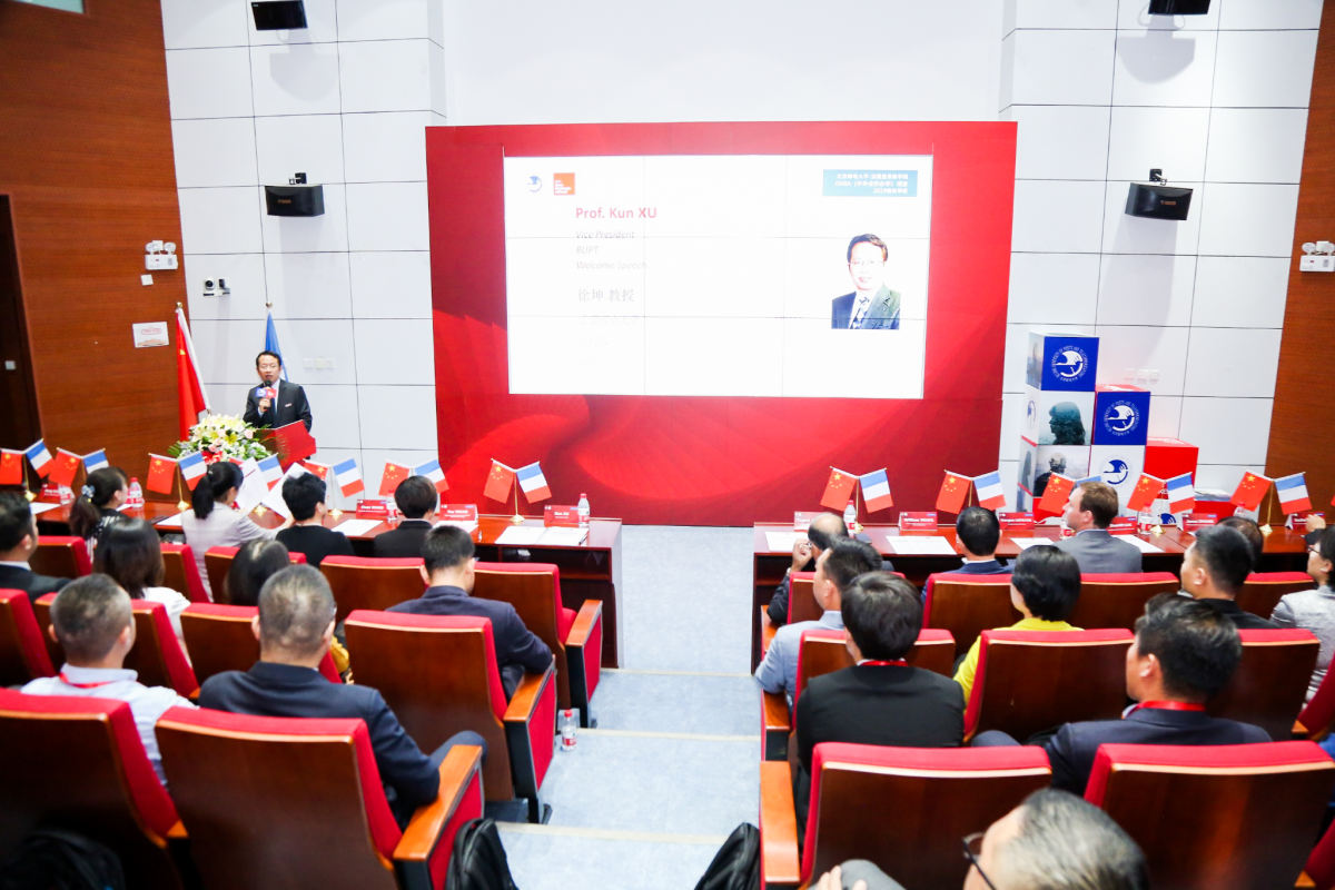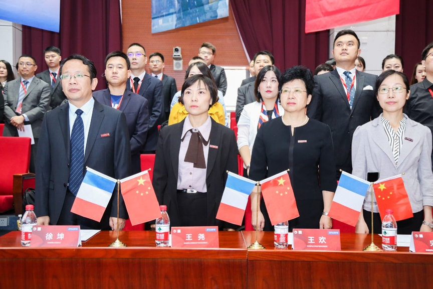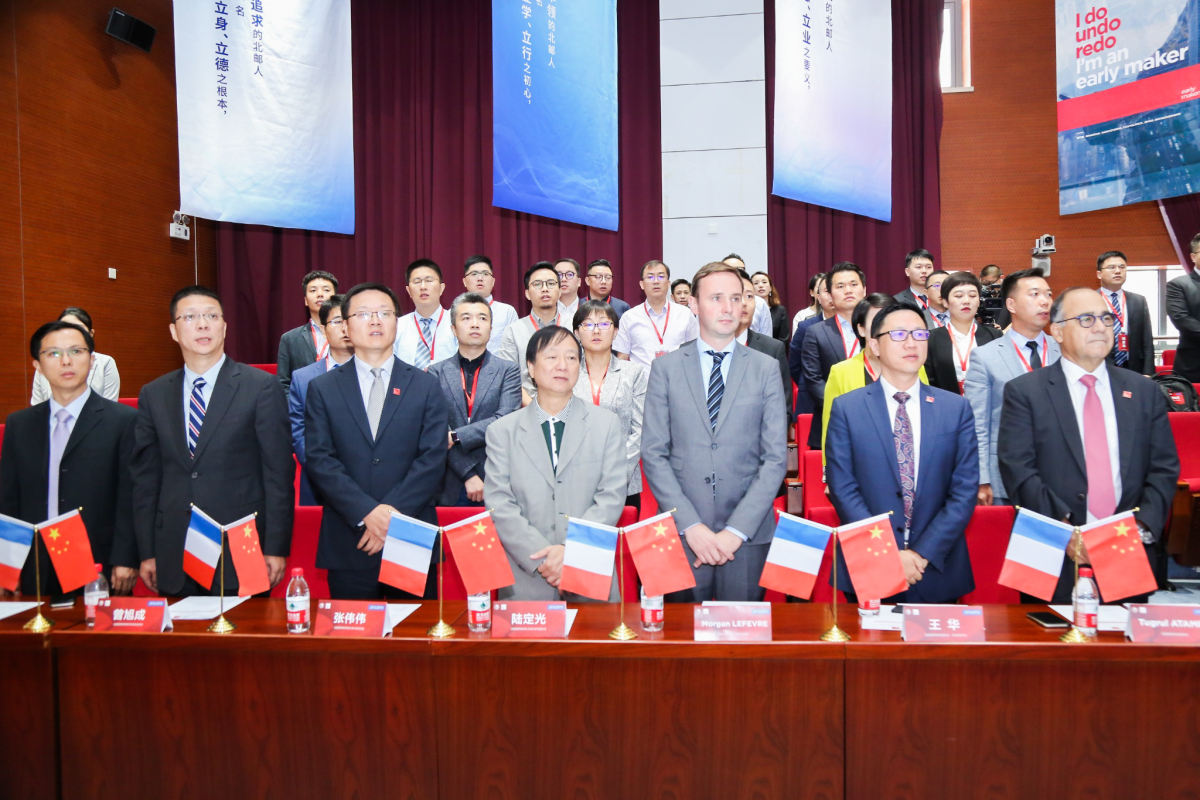 在庄严的肃穆的中华人民共和国与法兰西共和国国歌声中,开学典礼正式拉开帷幕。