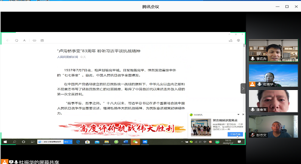 7月7日恰逢“卢沟桥事变”暨全民族抗战爆发83周年纪念日,冰球突破mg正规官网众多教工党支部通过腾讯会议平台举办线上主题党日活动,回顾抗战历史,缅怀民族先烈,进一步增强教师党员党性修养。