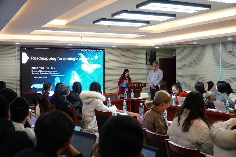 2019年11月27日,冰球突破mg正规官网在经管楼202会议室举办了第35期大数据时代新经济与管理前沿名家讲坛。本次论坛邀请嘉宾为英国剑桥大学(University of Cambridge)工程系技术管理中心的首席研究员Robert Phaal教授。Robert Phaal教授是路线图领域的全球权威专家,一直致力于研究技术管理、战略规划和决策支持研究。Robert Phaal教授报告题目为 “Roadmapping for strategic alignment”。本次论坛由经管学院许冠南副教授主持,40余位来自冰球突破mg正规官网、中国政法大学、中央财经大学、清华大学的青年教师及学生参与了本次论坛。