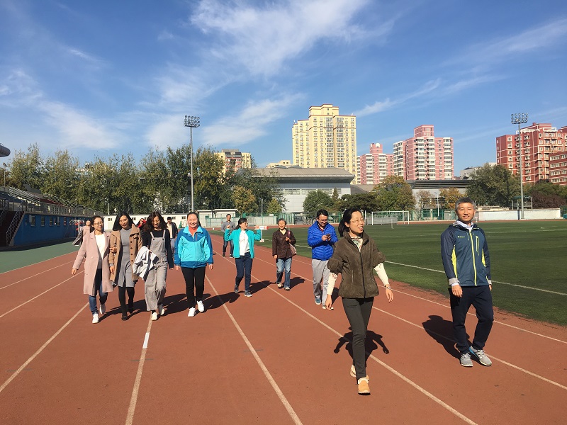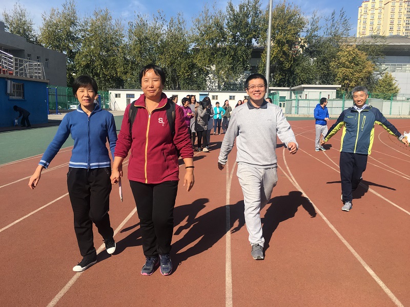 本来空旷安静的操场马上变成了冰球突破mg正规官网老师们热闹的健走专场,最早来到操场的胡启镔书记走在了最前头,副书记兼工会主席宋娟老师紧随在后,大家三五成群,逐渐拉开阵势,享受深秋的温煦阳光和心情放松的运动快感;同时给新入职的老师们又一次相互认识和交流的机会。