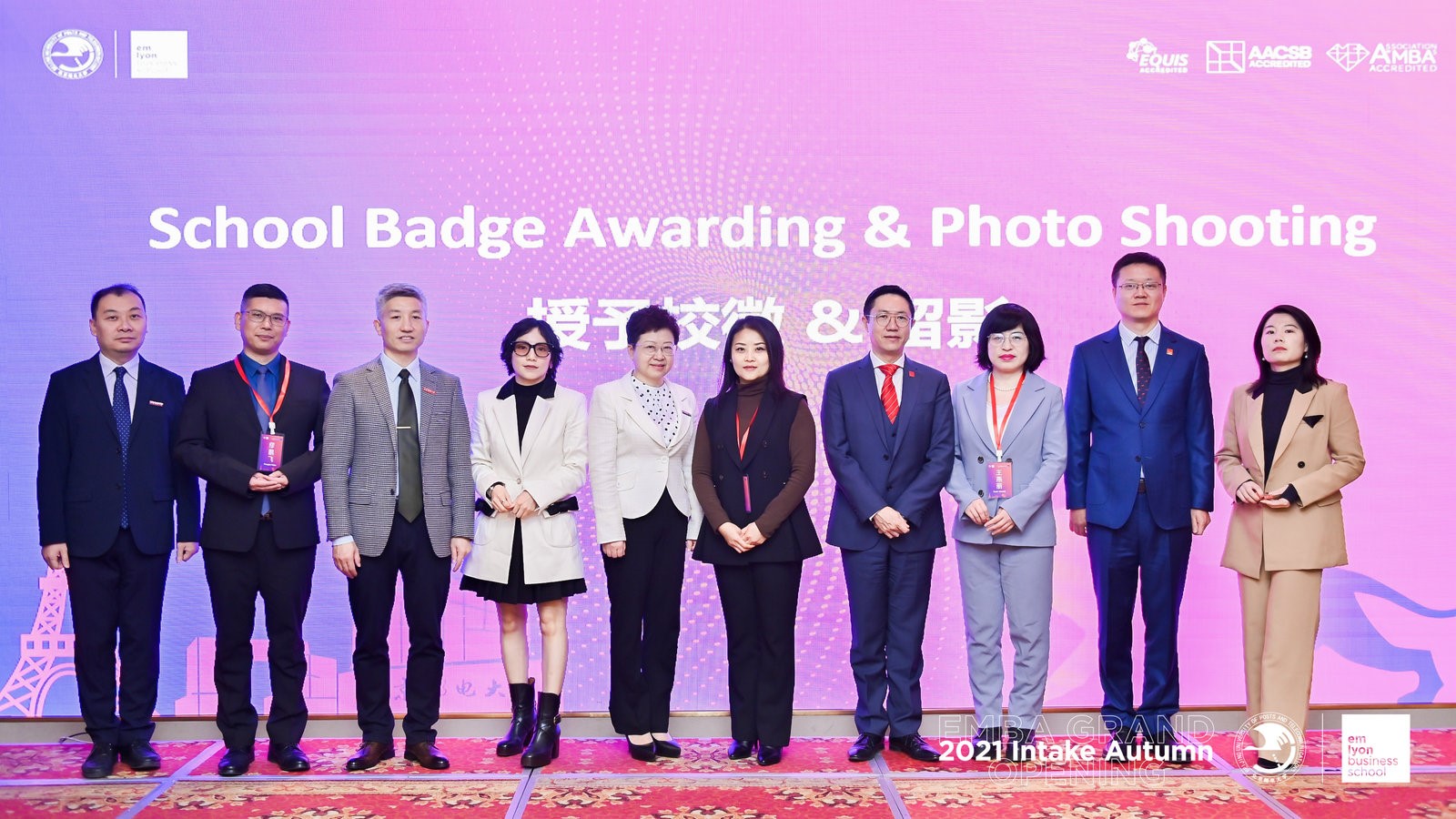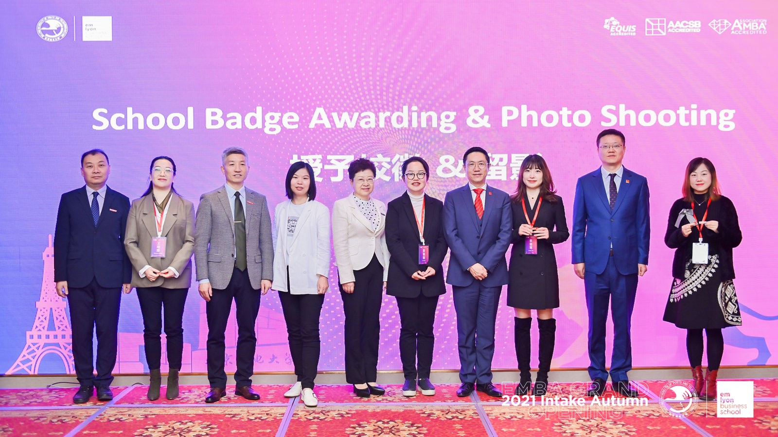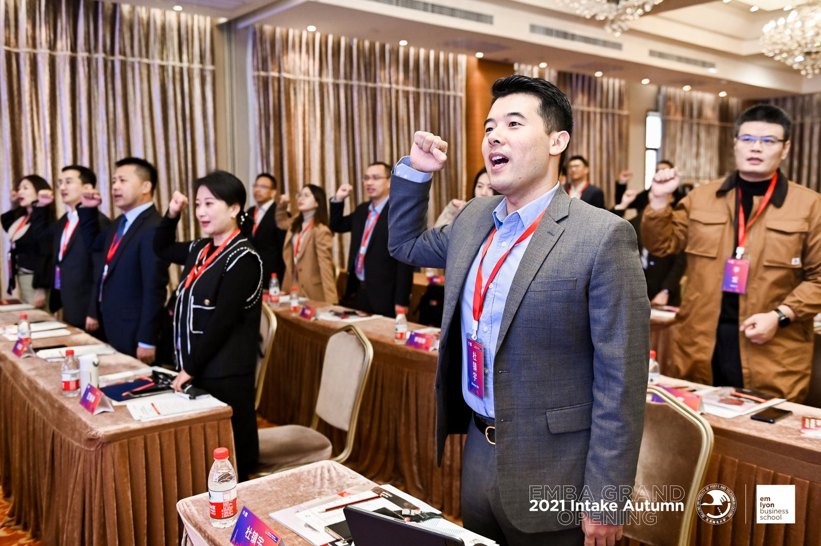 庄重而又简约的冰球突破mg正规官网-法国里昂商学院EMBA(中外合作办学)项目2021级秋季班开学典礼在校领导为新生佩戴校徽合影与新生嘹亮的入学誓词中圆满落下帷幕。