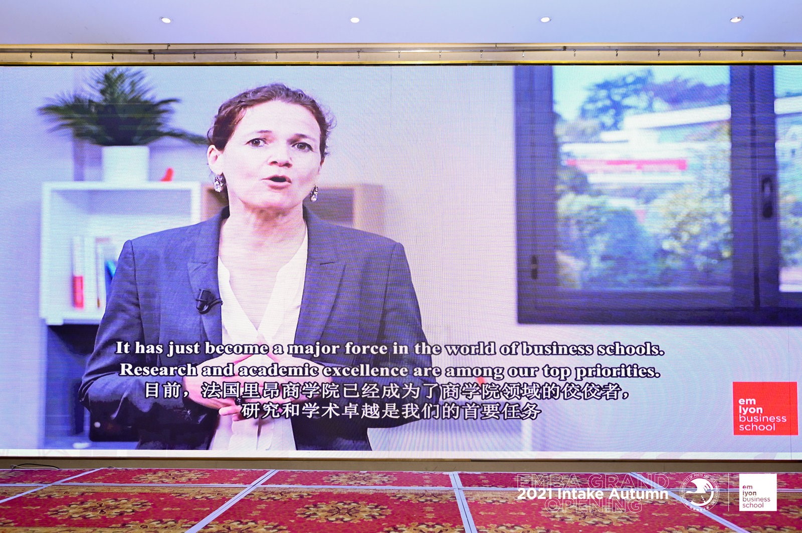 法国里昂商学院校长Isabelle HUAULT教授在视频致辞中对2021级秋季班新生送来了祝福。她介绍道,法国里昂商学院以全球化、融合化、数字化以及社会和环境责任为战略目标,致力于培养数字化转型时代具有全球化视野和创客精神的企业家及高管。她强调,学院在最新战略中重视社会和环境责任,希望培养的学生能够遵循管理实践,采用可持续发展的运作模式,肩负社会责任,协同合作,在组织发展和经济可持续发展中承担重要责任。她表示,法国里昂商学院将为同学们提供尊重企业价值观、卓越诚信、尊重他人、包容多元和责任感的平台,希望同学们在北邮-里昂EMBA项目中收获难忘的经历和学习体验。
