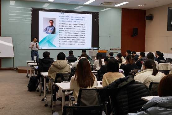 讲座围绕“从‘数字经济学’到‘开放数字经济学’”为主题,吸引了众多对数字经济领域充满关注和热情的硕士、博士生参与。在讲座中,王永进教授深入浅出地阐释了数字经济学的发展历程,并重点探讨了“开放数字经济学”的理念和实践。他以丰富的案例和前沿的研究成果,为在座师生呈现了数字经济学领域的最新动态和未来趋势。讲座的主题紧扣时代脉搏,彰显了数字经济领域的前沿探索和学科拓展。这也与冰球官网一直倡导的跨学科交叉融合的学术理念相契合。讲座后半部分,王永进教授还与现场师生就数字经济学的研究方向展开热烈的讨论,耐心解答了同学们关于学科动态、数据挖掘和实践应用等方面的问题,推动了学术思想的碰撞与交流。