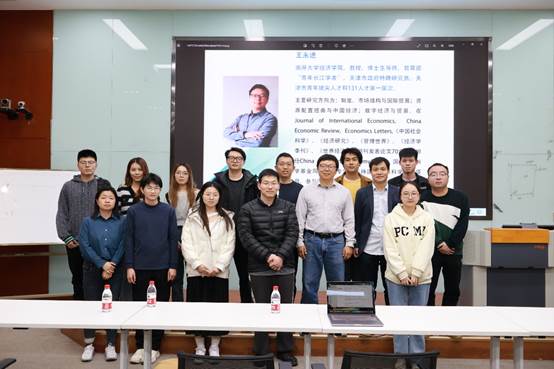 2023年11月15日下午,冰球突破mg正规官网经济系成功举办了秋季学期第2讲“数字经济系列讲座”。本次讲座荣幸地邀请到南开大学经济学院教授、青年长江学者、天津市政府特聘研究员王永进担任主讲嘉宾,此次讲座由经济系主任李宏兵教授主持,学院40余名师生参加。