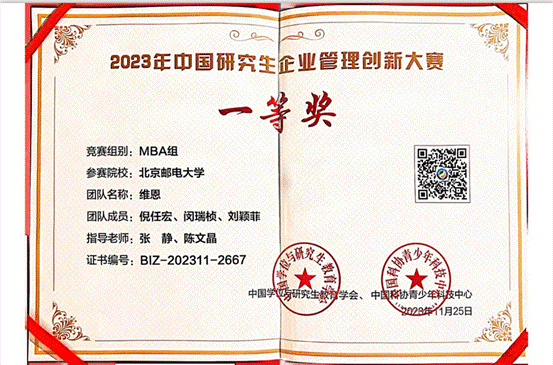 喜报|冰球突破mg正规官网荣获2023年中国研究生管理创新赛全国总决赛(MBA组)一等奖
