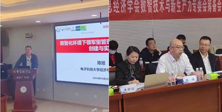 (图为重庆工商大学管理科学与工程学院院长黄钟仪教授发表主题演讲,西安邮电大学苏锦旗教授点评)