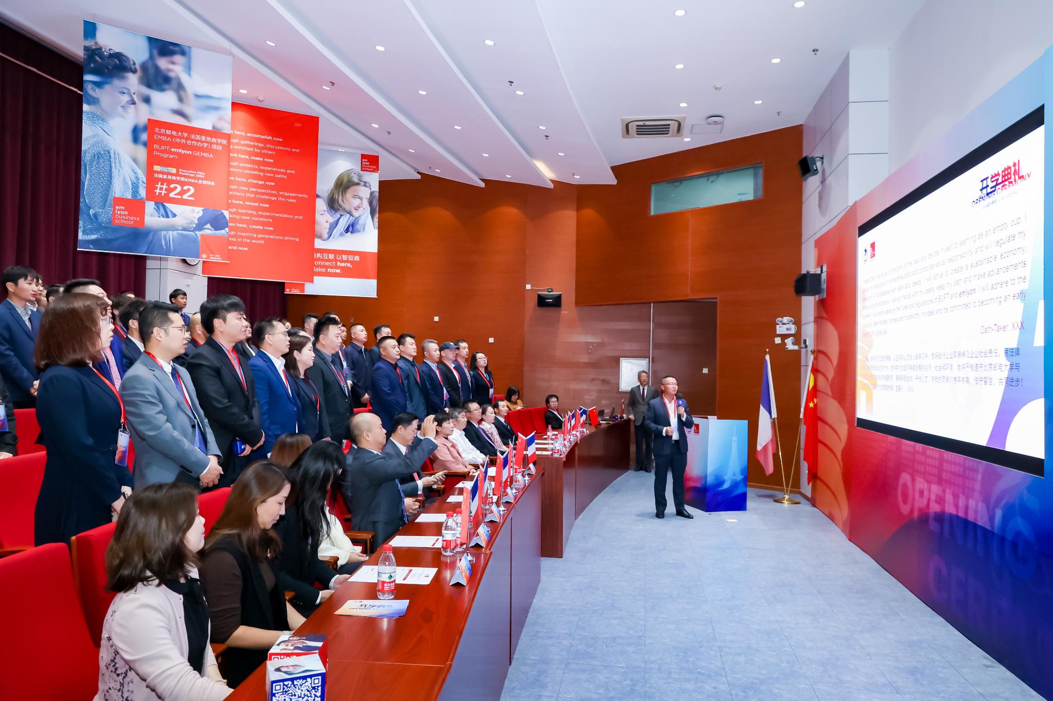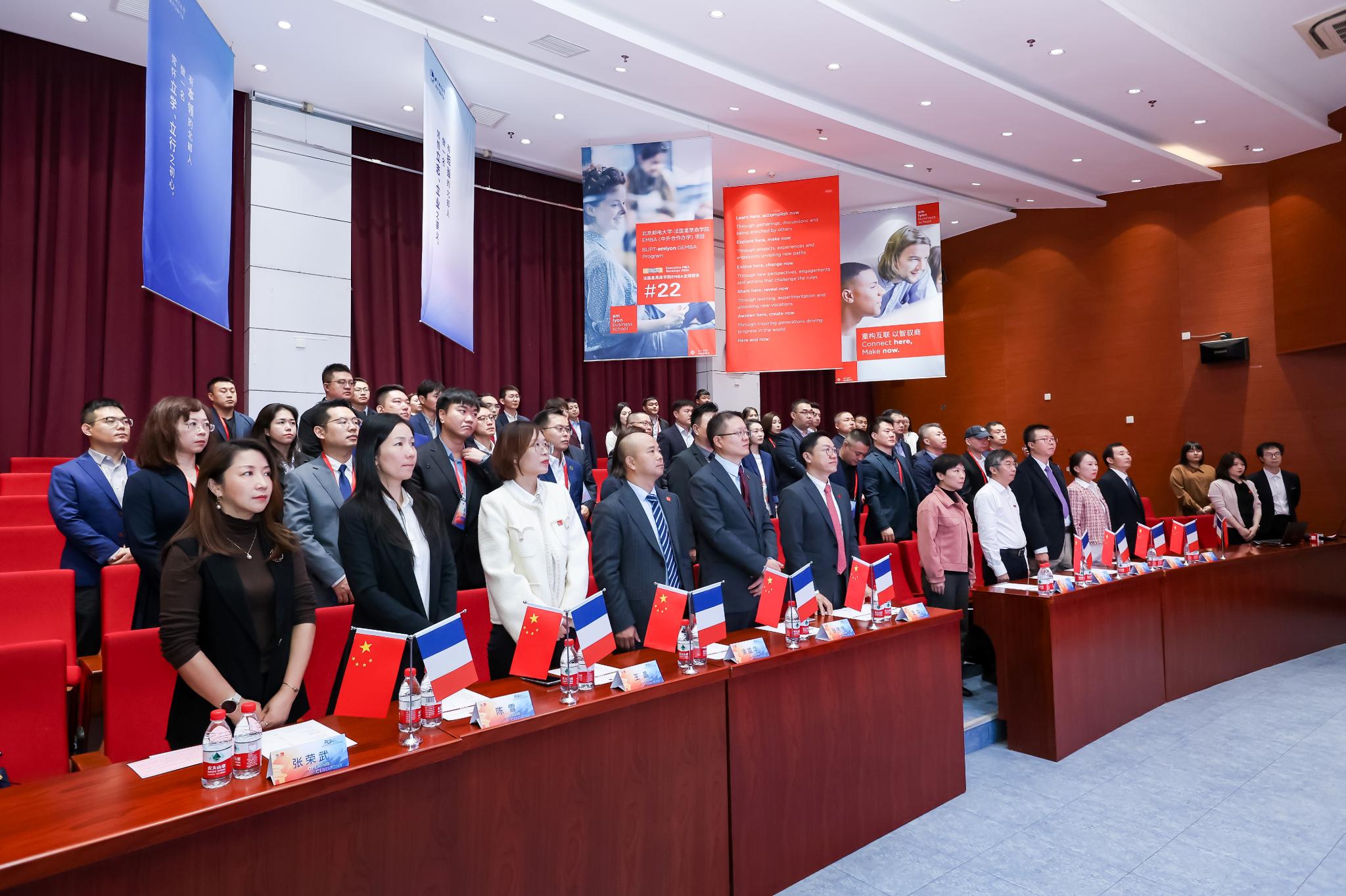 在庄严的中华人民共和国国歌与法兰西共和国国歌奏唱中,开学典礼正式开始。
