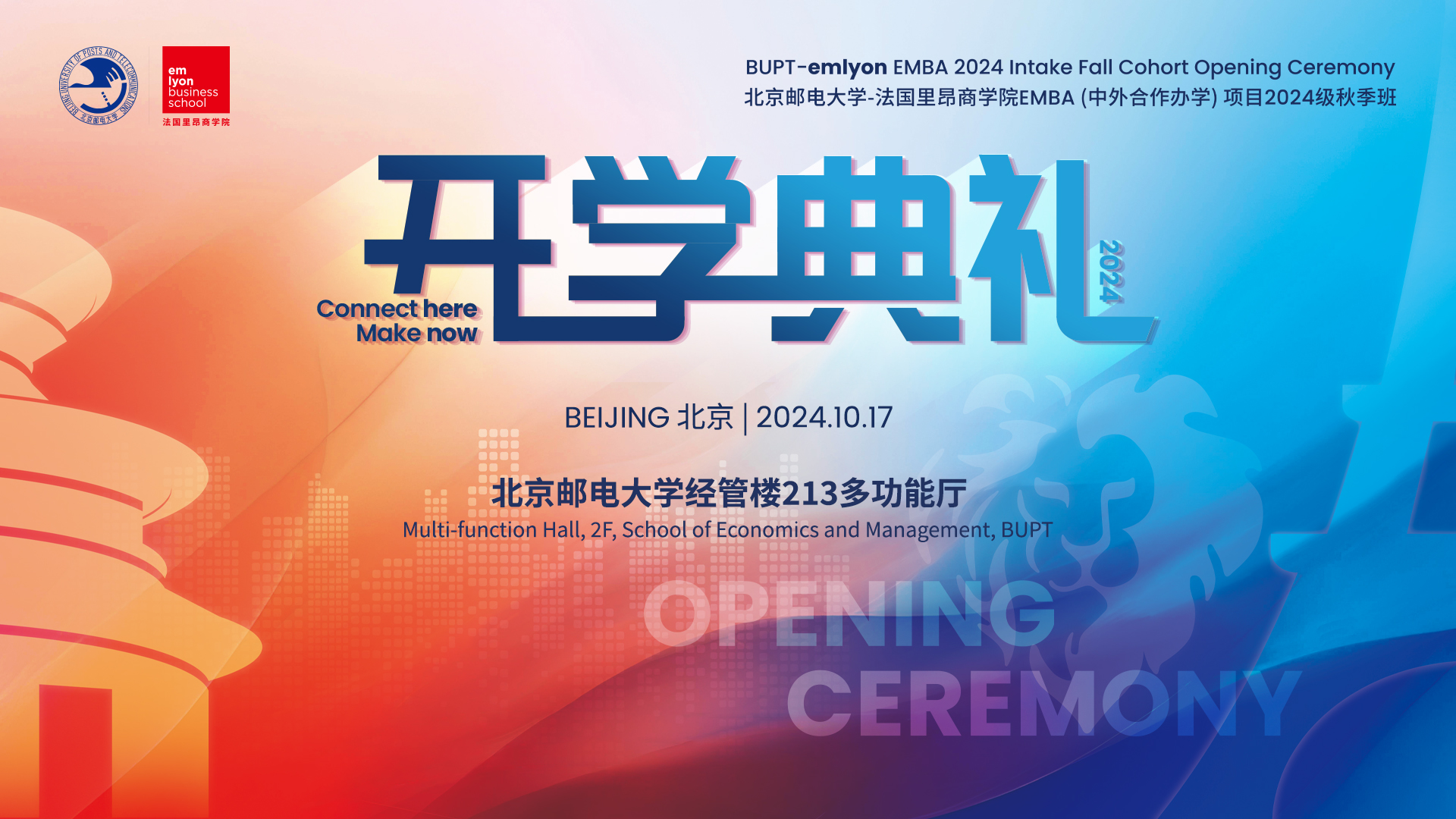 冰球突破mg正规官网国际合作与交流处处长王尧,冰球突破mg正规官网院长何伟,副院长赵晨,副院长谢智勇,法国里昂商学院副校长、亚洲校区校长王华, EE高管教育项目主任张伟伟,大健康产业中心主任涂益华,EMBA项目副主任王晶,EDP项目主任陈雪,华北学生校友会学生代表张荣武,EMBA2023级在读生学生代表李召严和2024 级秋季班全体同学共同出席本次开学典礼。典礼由冰球突破mg正规官网副院长谢智勇主持。