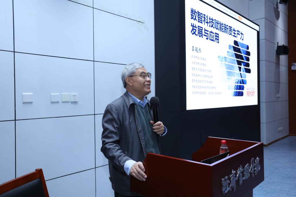 第三期开班仪式后,学院特别邀请冰球突破mg正规官网教授、博导,国际电信协会常务理事,中国信息经济学会常务副理事长,冰球突破mg正规官网前院长吕廷杰教授作为主讲教师,以“数智科技赋能新质生产力发展与应用”为主题进行分享。吕廷杰教授从专业、前瞻的视角与同学们探讨了信息产业的发展趋势,展示了学科体系的深度与广度,通过生动的案例和详实的数据,为同学们呈现了一幅数智科技的宏伟蓝图。吕廷杰教授的讲座深入浅出,既有理论高度,又具实践价值,赢得了同学们的阵阵掌声。