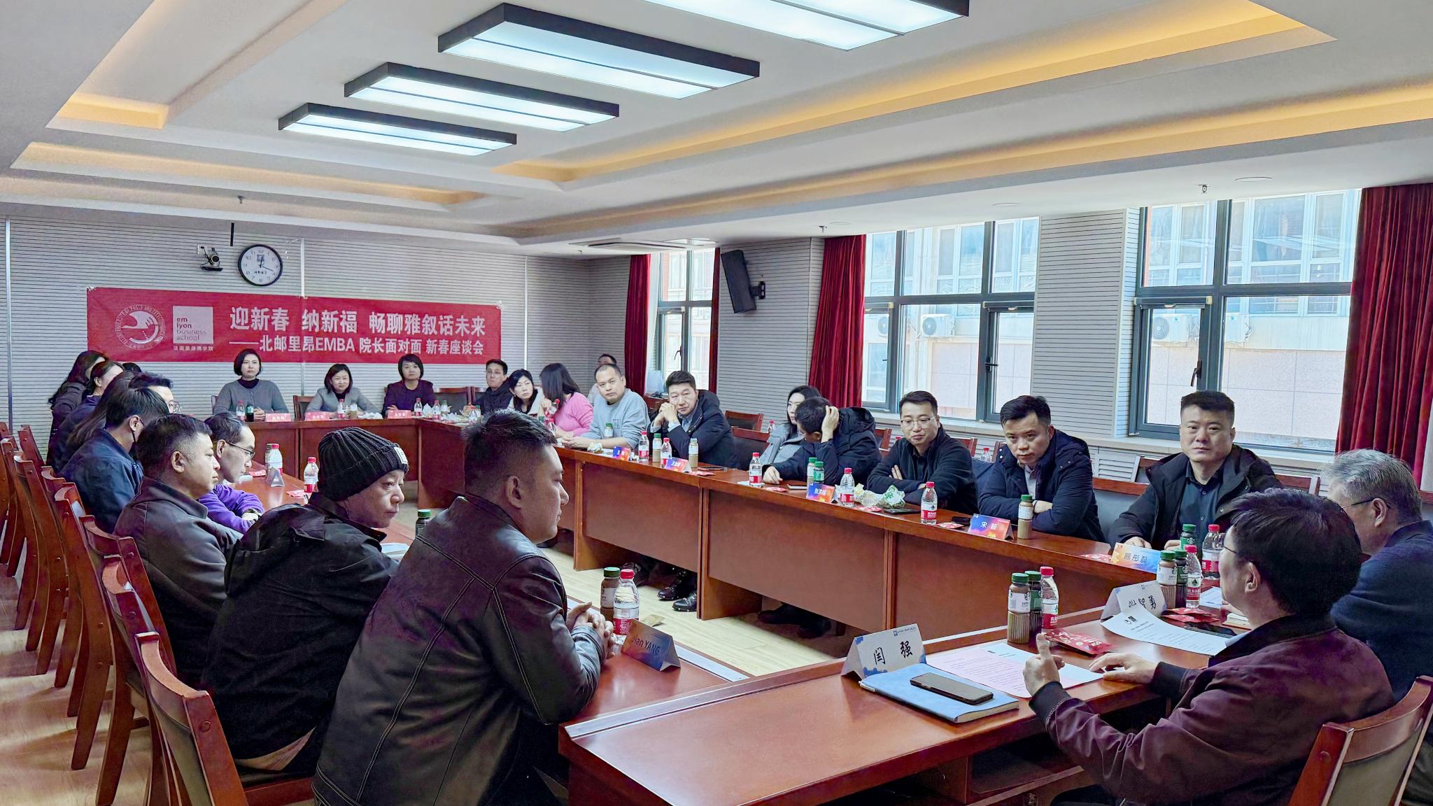 会议伊始,闫院长首先表达并强调了EMBA学员及项目在学院发展过程中的重要性,以轻松的方式邀请大家畅所欲言,表明学院将以立德树人为本职,以培养精英为己任,助力同学们更好的发展,新年伊始,并为大家送上了美好祝福,开启了温馨的座谈氛围。