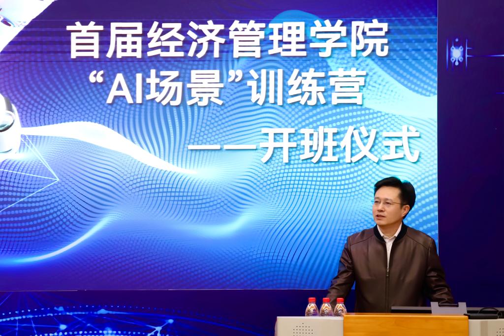 副院长赵晨教授主持仪式,介绍了训练营的基本情况和整体安排。本次训练营聚焦办公自动化、文化传承、电商营销、企业财务分析等10个细分领域,将前沿AI工具(如大模型、AIGC、知识图谱)与经管知识深度融合,为学生提供“学以致用”的平台。赵晨教授对入营的同学们表示热烈欢迎,并寄予厚望。