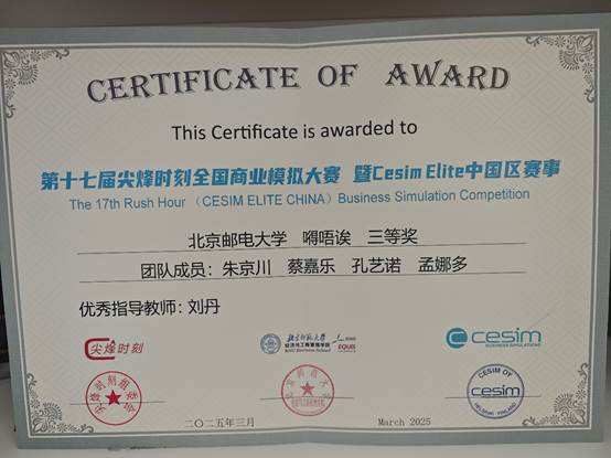 指导教师靳娟表示:“团队成员充分发挥了北邮在信息技术领域的学科优势,将数据分析与商业决策深度融合,展现了新时代商科人才的跨界能力。”