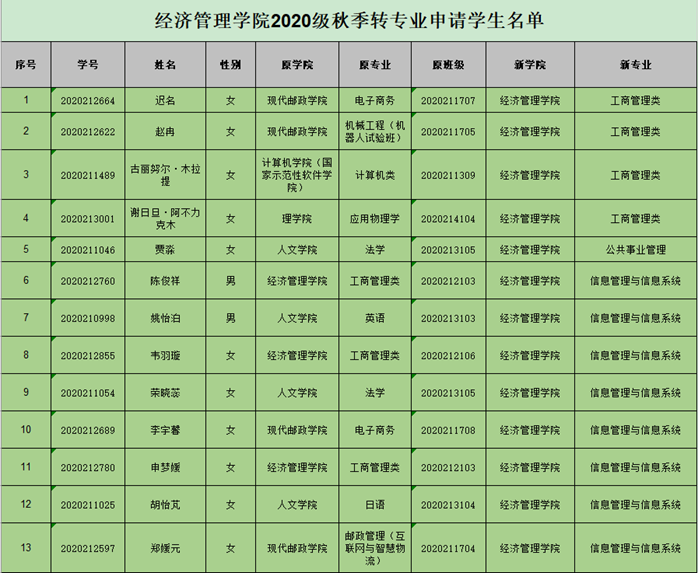 经管学院2020级秋季转专业面试,报名情况与具体安排如下: