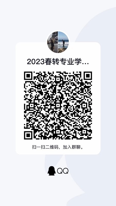 请面试名单中的学生于2月21日前,扫二维码入QQ群“2023春转专业学生群”并将自己本群昵称标为“学号+姓名”。QQ群号码:600749548