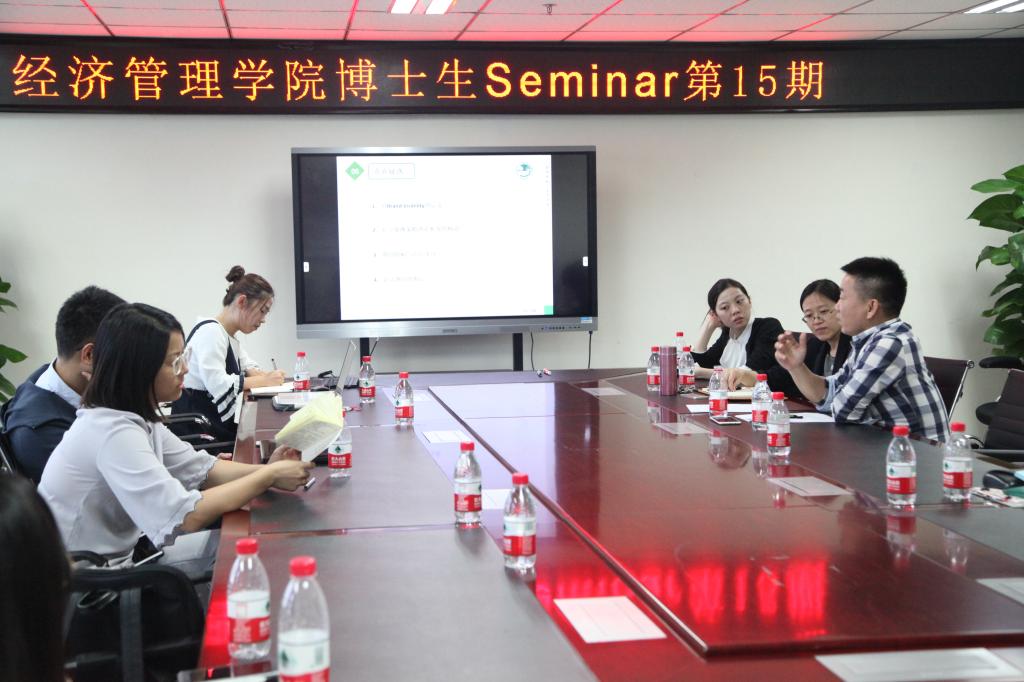 冰球突破mg正规官网2018年第15期博士生Seminar2018921日下午340在经管楼204教室组织召开。本次Seminar由曾雪云老师主持,邀请了冰球突破mg正规官网研究生郝宁华分享其最新的研究成果《How social media strategy on WeChat contribute to the brand visibility of micro and small firms?》,并特邀了台湾师范大学特聘教授吴彦濬老师进行点评。