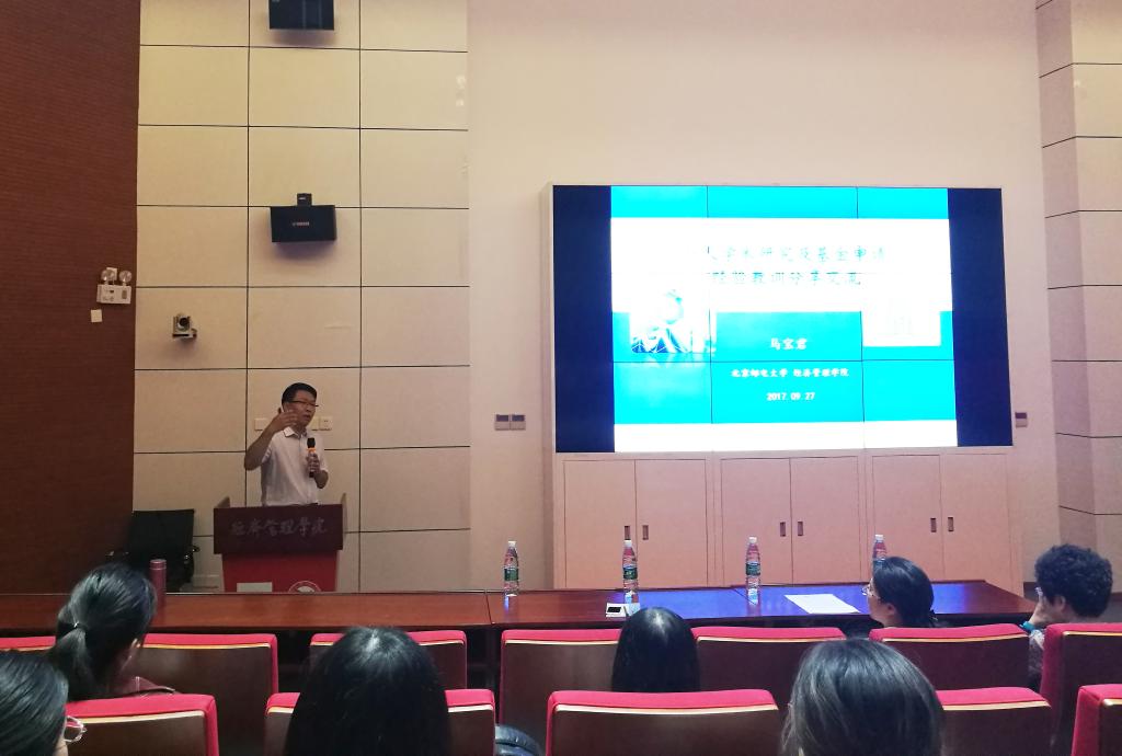 2017年9月27日,冰球突破mg正规官网在经管楼213组织召开了第八期青年学者学术论坛,冰球突破mg正规官网管理科学与工程系副教授马宝君老师进行了分享。参与本次论坛的有王欢院长、学院青年学者,以及部分博士生代表。本次论坛旨在向大家分享在学术研究及基金申请方面的经验和心得。