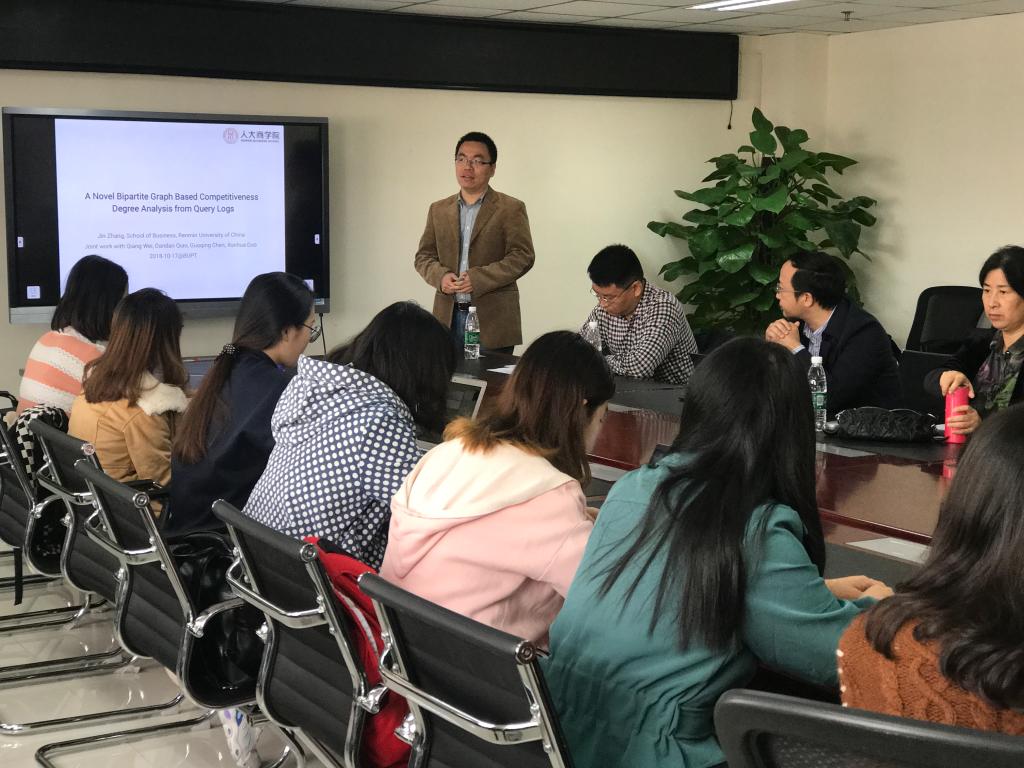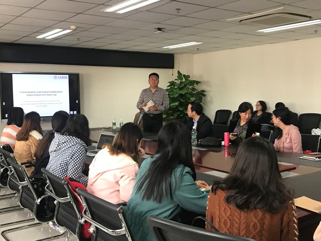 随后,张瑾老师向大家讲述了大数据时代背景下企业如何采用以数据为驱动的竞争智能分析技术,以达到帮助企业树立制定战略的标杆,了解市场结构分布状况,提升管理决策效率的目的;并为大家讲述了自己在科研过程中的心得体会,对研究题目选取、研究实验设计、论文投稿修改等方面为老师和同学们提出了若干中肯的建议和意见。