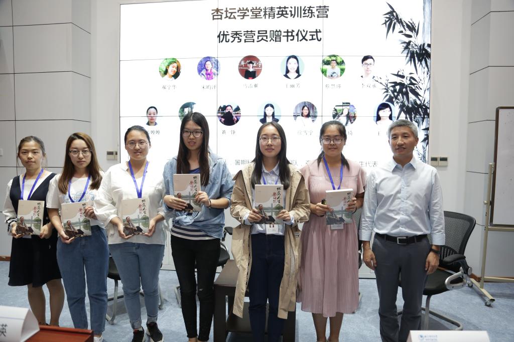 随后,在全体嘉宾和师生的热烈掌声中,胡启镔书记为研究中心杏坛学堂的优秀营员举行了《坦荡人生无悔路》的赠书活动,鼓励同学们再接再厉,在学术方面取得更多成果。