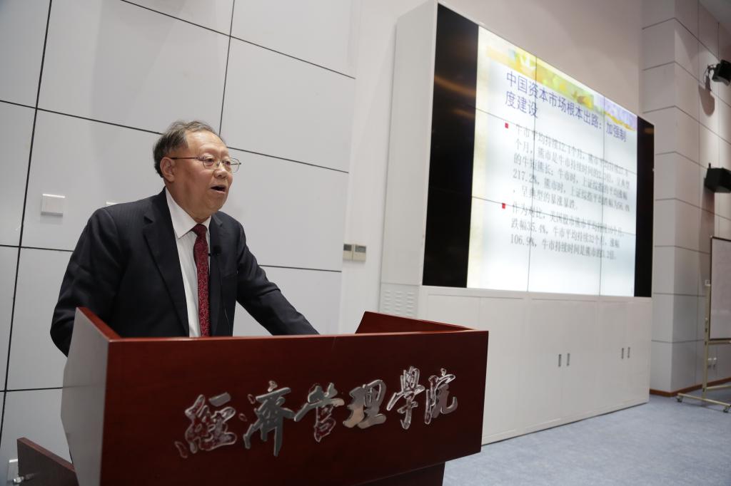 北京大学曹凤岐教授进行了“提高上市公司质量是稳定和发展股市的基石”的主题演讲。曹教授提出,股市低迷根本原因在于投资人信心不足,中国上市公司质量不高以及市场缺乏保护投资者的制度和机制。