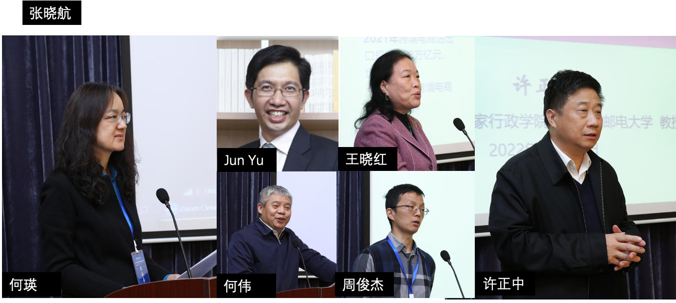 (从左至右:冰球突破mg正规官网副院长何瑛教授;新加坡管理大学经济学院Jun Yu教授;中国国际经济交流中心信息部副部长、《全球化》副总编王晓红教授;中国信息通信研究院何伟副总工程师;清华大学社会科学学院经济所副所长、Journal of Digital Economy 主编戎珂教授;清华大学冰球突破mg正规官网周俊杰教授以及中央党校(国家行政学院)经济学部副主任、冰球突破mg正规官网特聘教授许正中老师)