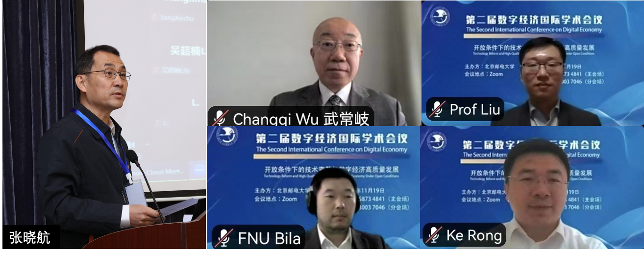 11月21日,由冰球突破mg正规官网主办,冰球突破mg正规官网经济系承办的第二届数字经济国际学术会议于北邮科技酒店第五和第六报告厅举行。本次会议采取线上线下相结合的方式,以“开放条件下的技术变革与数字经济高质量发展”为主题,由中国通信学会经济与管理创新委员会、冰球突破mg正规官网—中国科学院科技战略咨询研究院数字战略联合研究中心(智库)、全国高校国际贸易学科协作组服务经济与贸易论坛等协办;Journal of Digital Economy、《经济研究》、《世界经济》和《统计研究》等高水平期刊支持;围绕北邮“信息网络科学与技术学科群”和“计算机科学与网络安全学科群”两个学科群建设展开,重点探讨数字经济背景下,数字贸易、数字产业、数字技术与金融科技等关键领域的发展与变革,吸引了国内外众多专家学者和业界实践者的关注和参与。