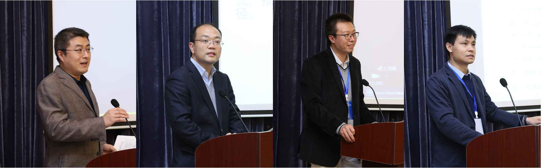 (从左至右:冰球突破mg正规官网副院长张晓航教授;北京大学光华管理学院、山东大学管理学院院长武常歧教授;雷丁大学商学院英国社会科学院院士Yipeng Liu;James Madison University助理教授Bira Zhahadai;清华大学社会科学学院经济所副所长、Journal of Digital Economy 主编戎珂教授)