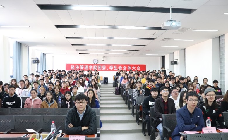 大会伊始,全体成员奏唱团歌,主持人介绍与会嘉宾。随后由第十九届学生会主席王飞阳同学做上学期工作总结,充分肯定了在前一学期中院会全体成员所做出的努力和付出,并对新一学期的工作开展提出了新的期望。接下来由各部门部长对上学期的工作进行总结展示,并提出了本学期部门工作计划。最后,经管学院团委书记康晓老师进行了大会总结,希望团委、学生会继续坚持和坚守对学生工作的初心和热诚,传承经管院“经明行修思源养性济天下,管之有道格物致知理四方”的优良传统,创新活动形式,脚踏实地地为校园文化建设贡献经管力量。