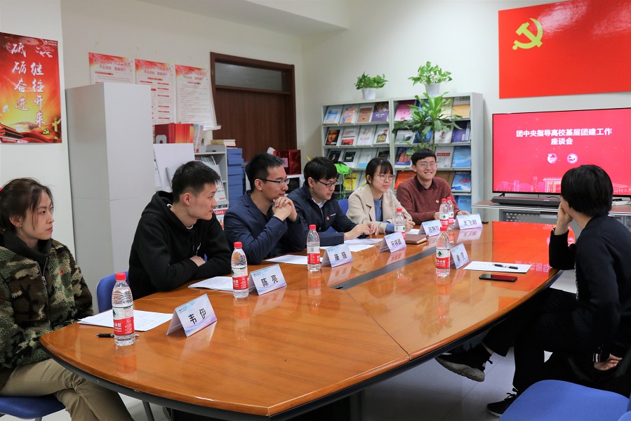 2019年3月28日,团中央社会联络部袁旦老师莅临冰球官网冰球突破mg正规官网召开基层团建工作座谈会,校团委书记许飞老师、校团委办公室主任汤思源老师陪同调研指导。学院团委书记康晓老师、团委副书记宋祺晨老师以及学院团委、学生会、基层团支部书记代表及学生团员代表参加座谈会。