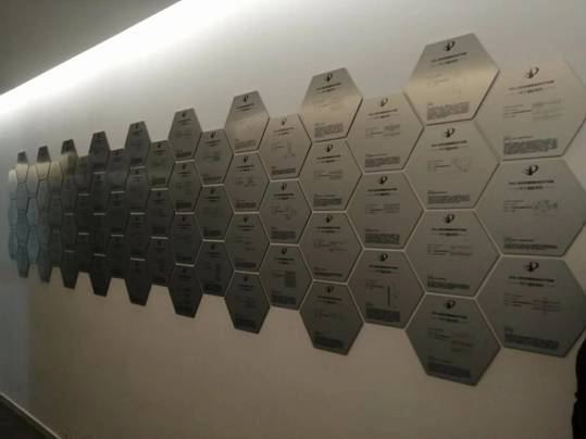 达闼科技注重云端智能机器人上的持续研发投入,已经在云计算、人机融合智能、网络安全技术、区块链、云端智能控制终端等方面拥有了深厚的技术积累,在“云端智能机器人”领域形成了技术壁垒。同时为了鼓励员工创新,达闼科技在内部创新推行专利合伙人计划“Patent Partnership Program”,通过高竞争性的专利政策,将高达10%的专利收入来源直接奖励给专利发明者,且长久奖励(即使是离职)。下图即为达闼科技的专利墙。