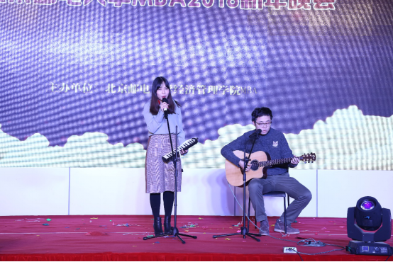 之后,精彩的《人偶舞》以其流畅活泼,新颖有趣的舞姿将整个晚会的气氛带上了高潮,引来大家阵阵热烈的掌声。由17级快一班周雪平同学独唱《一次就好》、17级慢班全体同学诗朗诵《面朝大海 春暖花开》、17级全日制班同学表演《期末考后的狂欢》和2017级MEM学员吉他弹唱的《香格里拉》等精彩节目,呈现了属于北邮MBA学子的活力与激情。
