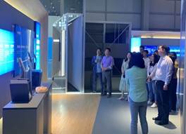 首先来到旷视公司的展厅,展厅内陈列着旷视最新的人工智能产品和技术应用。校友于立满向同学们详细介绍了消费物联网、城市物联网、供应链物联网的智能场景,同时也为同学们演示了数字化感知系统和自动化执行系统的智能化场景,并着重的介绍了旷视公司的Brain++新一代人工智能生产力平台。展厅中的科技感,让同学们感受到旷视公司在人工智能技术方面的领先地位,更展示了旷视公司在人工智能领域的深厚造诣和创新能力。