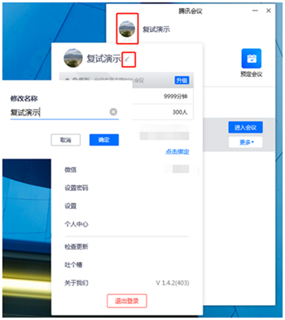 (2)考生须将腾讯会议中的名字修改为“组内顺序号+姓名+前/组内顺序号+姓名+后”修改方式如下: