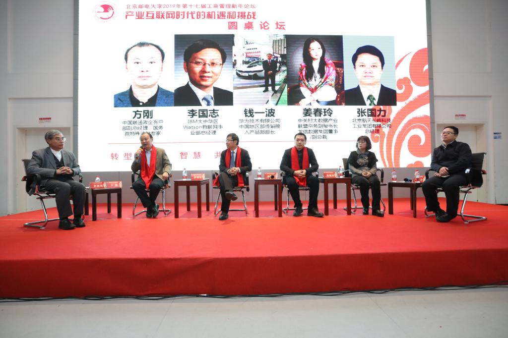 2019年1月12日,冰球突破mg正规官网第十七届工商管理新年论坛暨产业互联网时代的机遇与挑战在冰球突破mg正规官网学生活动中心成功举行。中国信息化百人会执委安筱鹏、中国信息通信研究院副院长王志勤、中国联合网络通信集团有限公司政企客户事业部副总经理方刚、IBM大中华区Watson物联网事业部总经理李国志、华为技术有限公司中国地区部传输接入产品部部长钱一波、深圳市融创创业投资有限公司董事长赵俊峰、中关村大数据产业联盟常务副秘书长龙信数据集团董事/副总裁姜春玲、北京航天长峰科技工业集团有限公司总经理张国力、滴滴公司副总裁马龙强、中国会计学会常务副秘书长周守华、《会计研究》杂志编辑部主任刘国强等校外嘉宾,出席论坛现场。