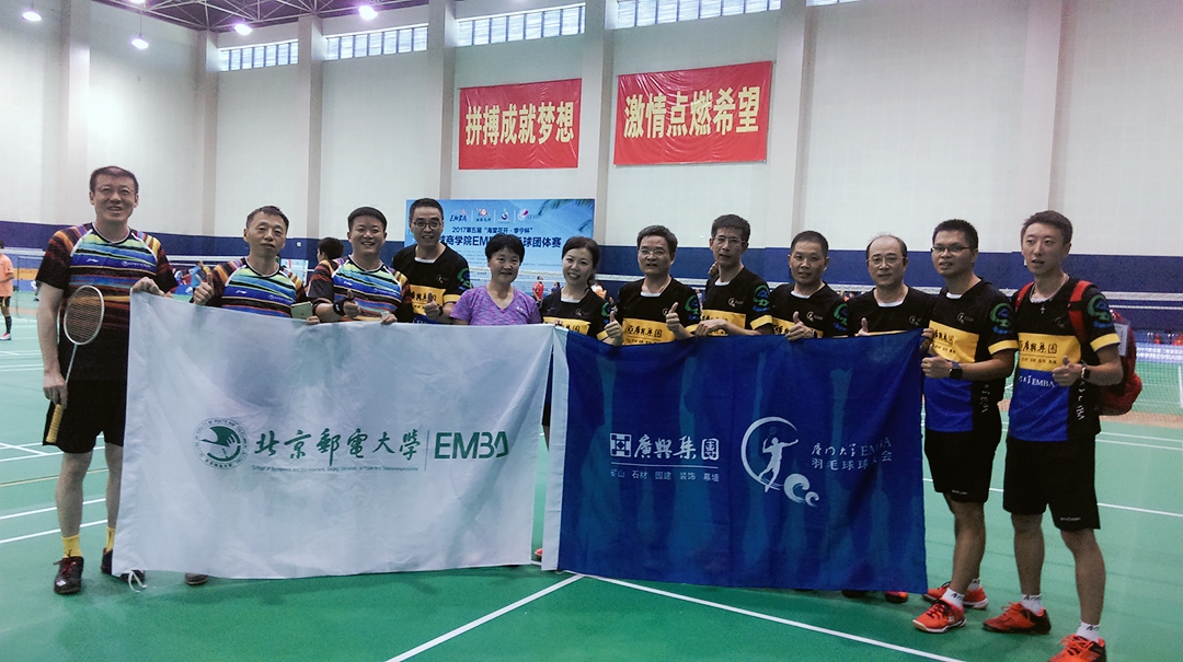 北邮经管EMBA羽毛球代表队先后对阵华南理工商学院、北大商学院、厦门大学商学院、人大商学院等多支队伍,在大家的奋力拼搏下,小组顺利出线,最终获得乙组第十名的好成绩。本届羽毛球代表队队长为2014级EMBA学员朱卫泉。