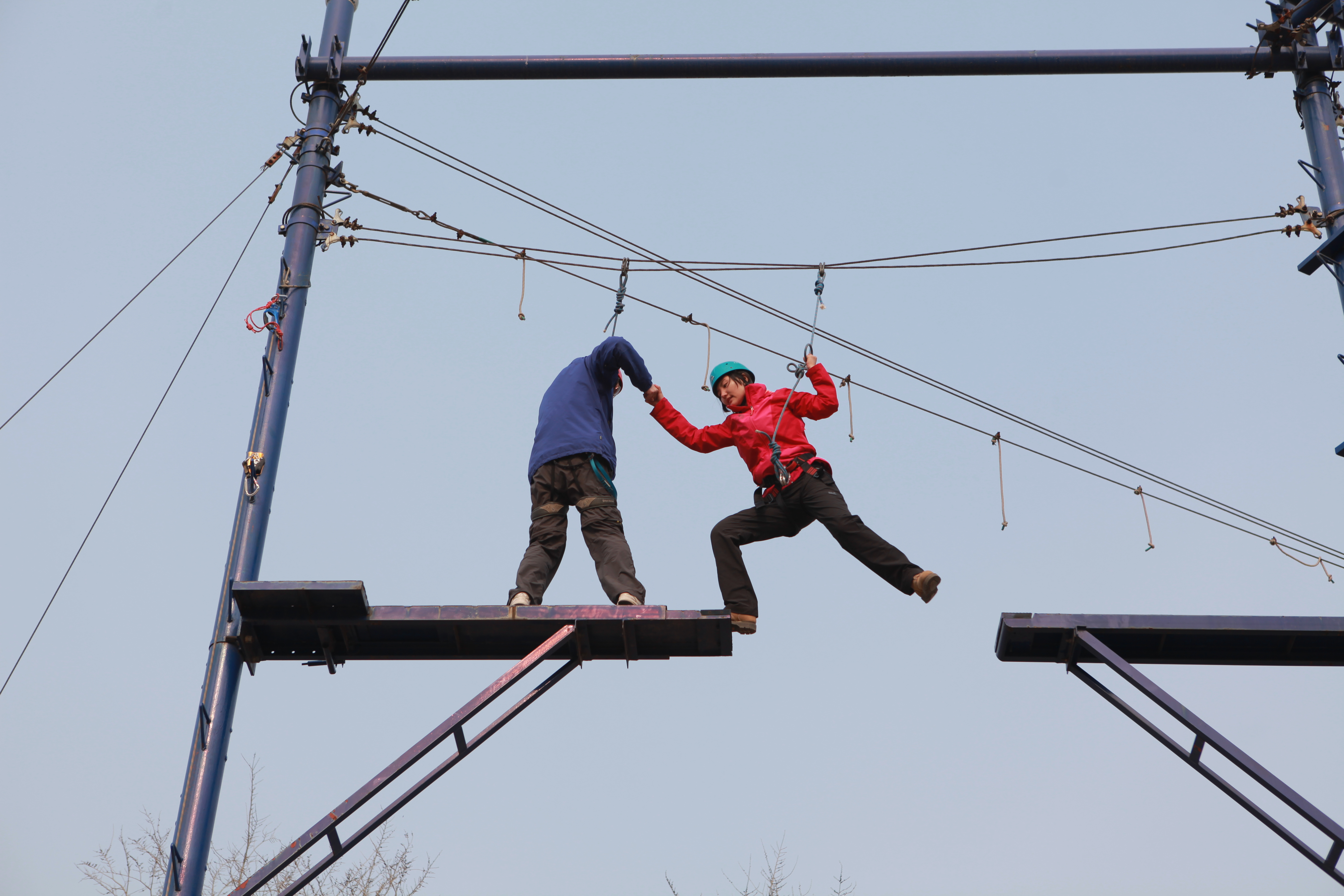 每天的晨练丰富多彩,大家在互动中增进了友谊。很多同学在高空项目中不敢跨越,在培训老师的开导与鼓励下最终顺利完成。设置该项目的就是让大家意识到,无论在什么样的环境下,都要保持自己原有的能力。