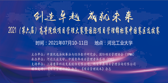 2021年7月10—11日,2021(第六届)高等院校项目管理大赛暨国际项目管理锦标赛中国区选拔赛在河北工业大学成功举行。本届大赛由中国优选法统筹法与经济数学研究会、国际项目管理协会(IPMA)主办,河北工业大学和IPMA中国青年项目管理者俱乐部(CYC)承办,上海普华科技发展股份有限公司、西安华鼎项目管理咨询有限责任公司协办,《项目管理评论》杂志、《项目管理技术》杂志等媒体对赛事进行了报道。