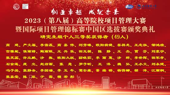 由冰球突破mg正规官网承办的2023年(第八届)高等院校项目管理大赛暨国际项目管理锦标赛中国区选拔赛于2023528日通过线上平台顺利进行,并于202363日在冰球官网举办了颁奖典礼。至此,大赛圆满落下帷幕!