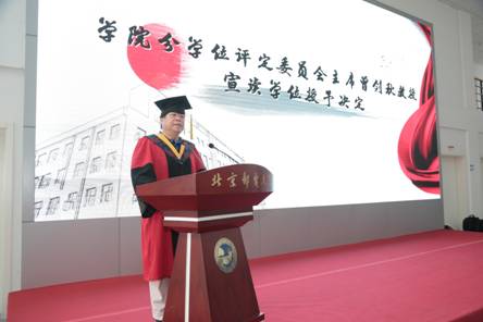 冰球突破mg正规官网学术委员会主席曾剑秋教授宣读学位授予决定