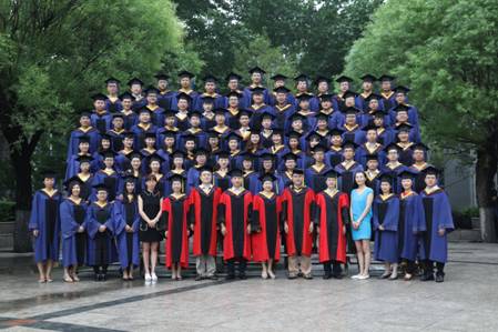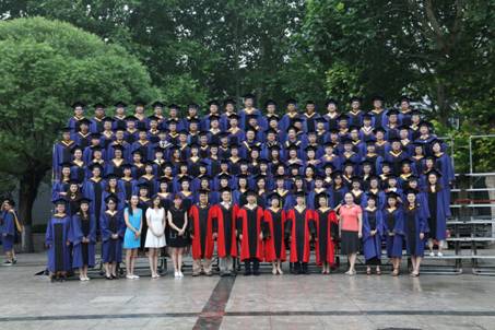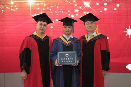 发言结束,王欢教授、曾剑秋教授、马晓飞副教授为全体毕业生授证拨穗,并合影留念。
