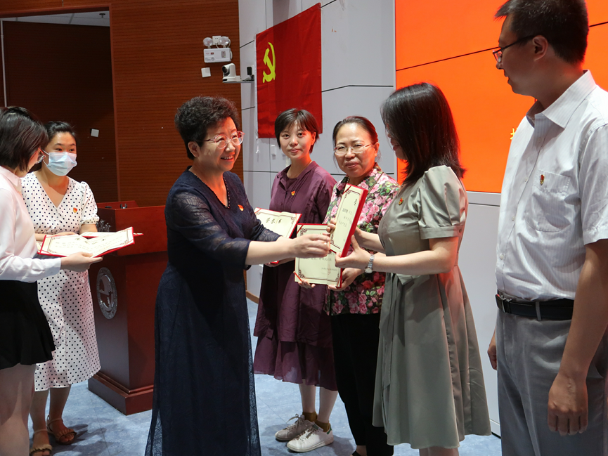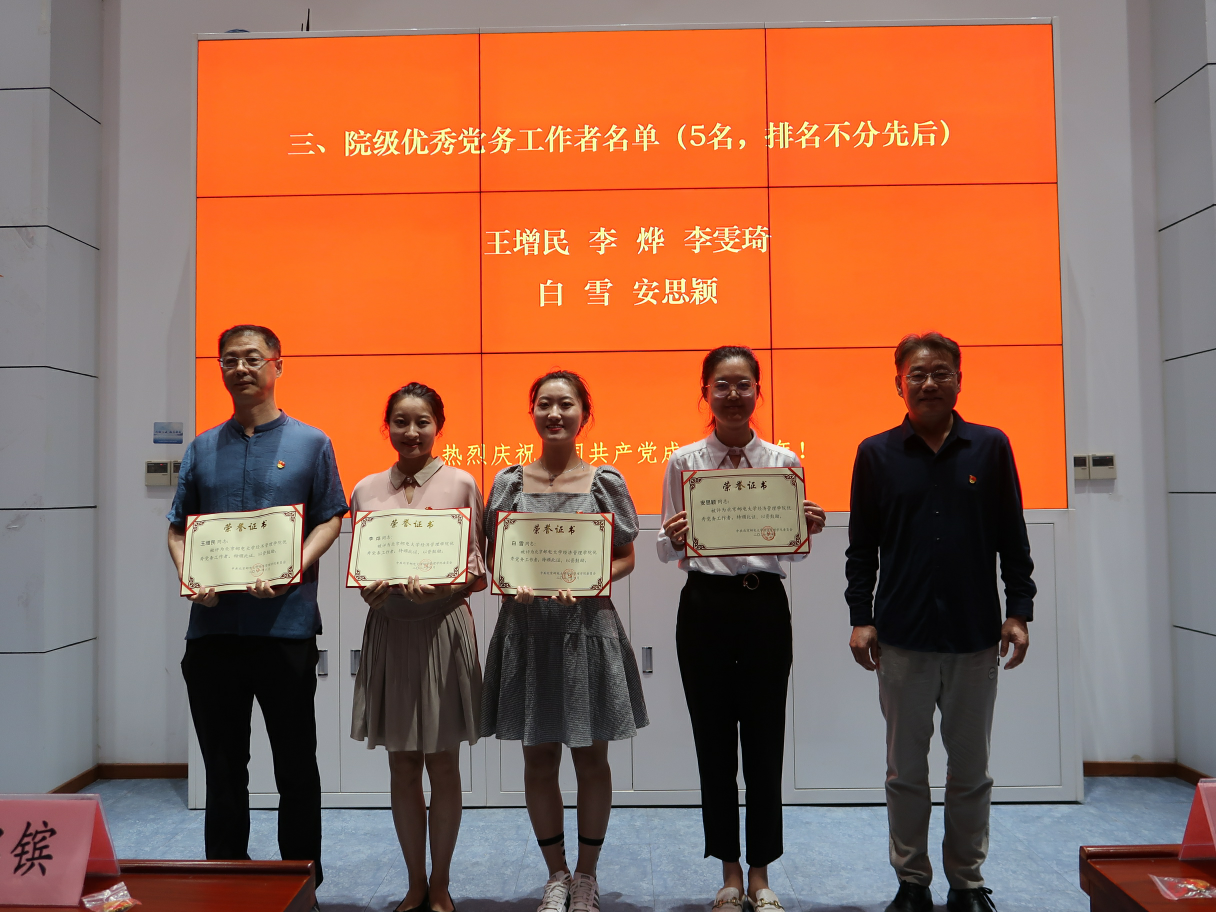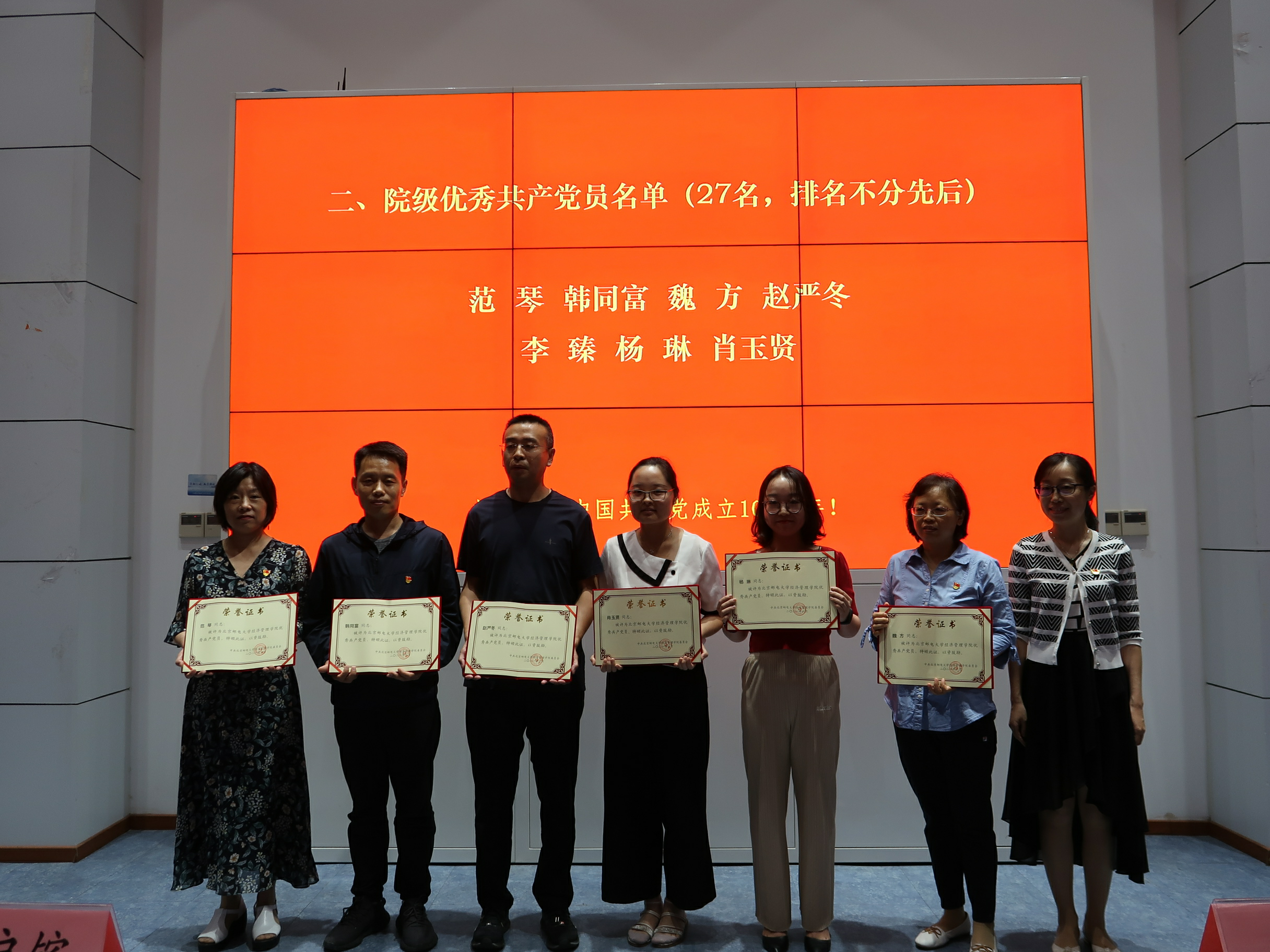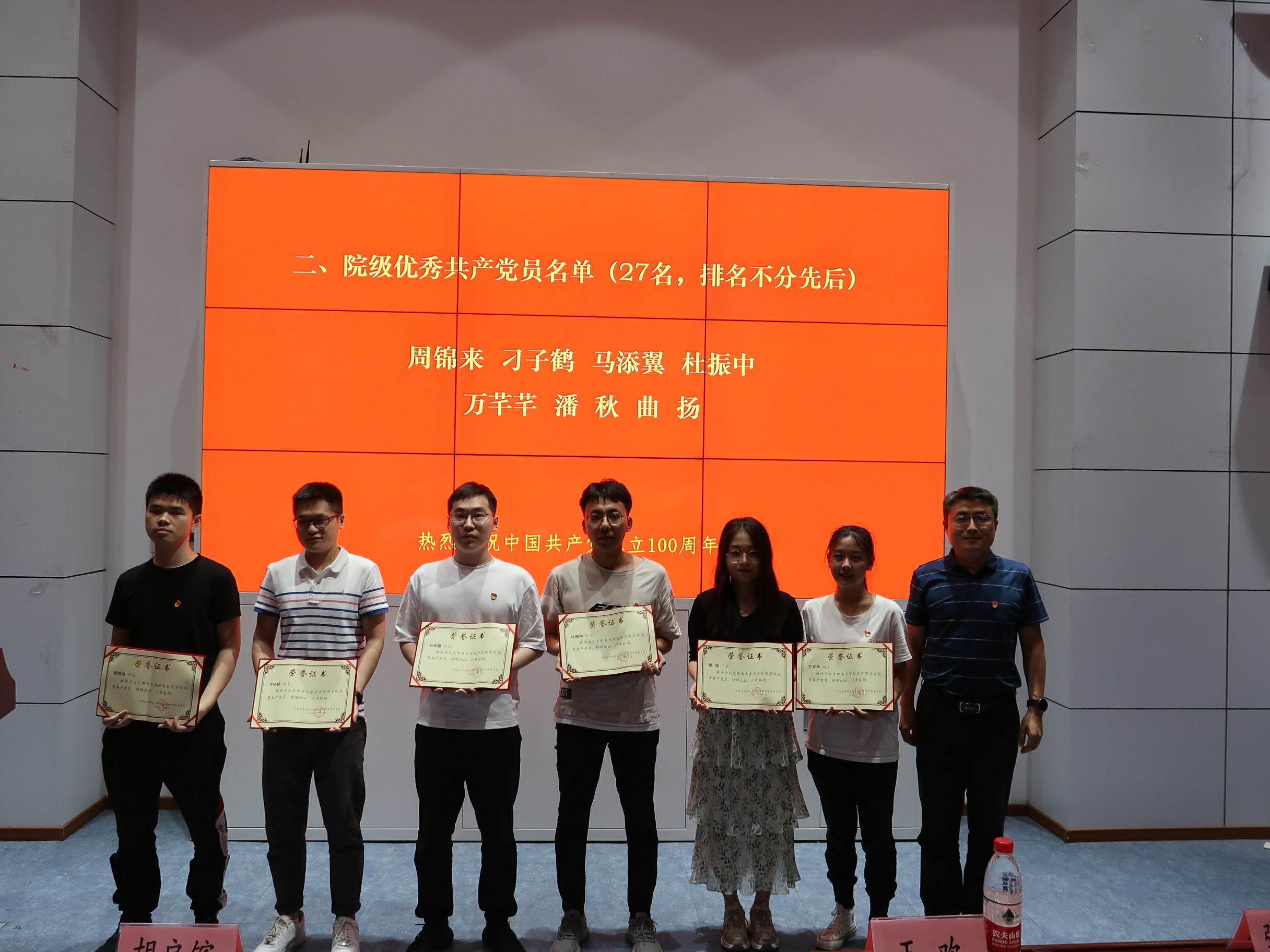 表彰大会在雄壮的国歌中隆重开幕。随后,院党委副书记宋娟宣读了《中共冰球突破mg正规官网委员会关于表彰2021年先进党组织优秀共产党员优秀党务工作者的决定》,院领导班子成员分别为受到表彰的先进集体和优秀个人颁发荣誉证书并合影留念。
