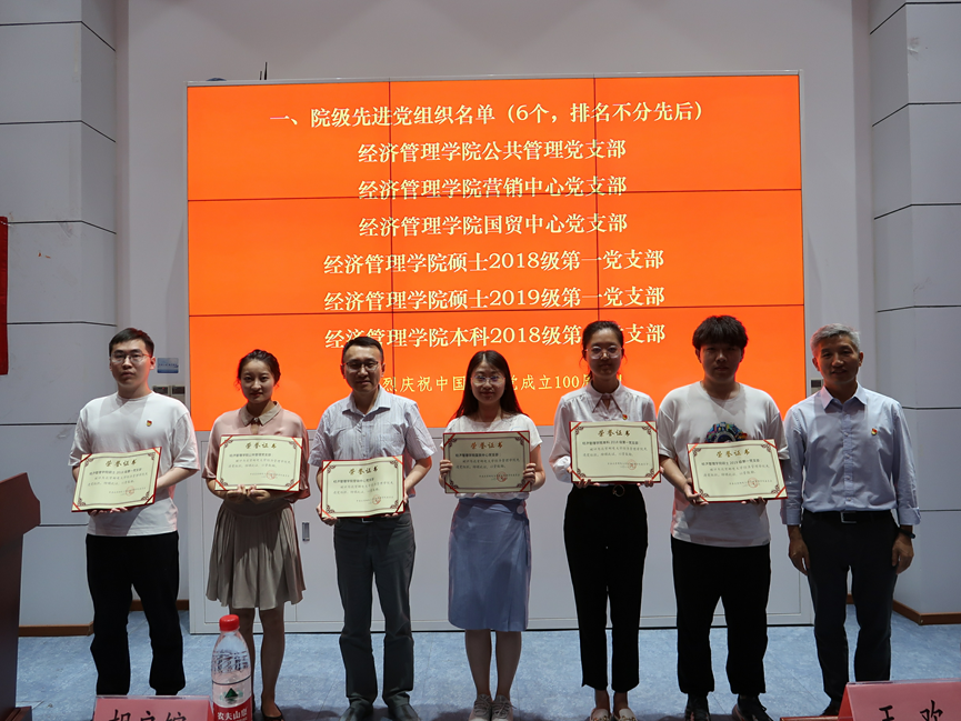 2021年6月18日下午,中共冰球突破mg正规官网委员会庆祝中国共产党成立100周年暨“两优一先”表彰大会在经管楼213多功能厅成功召开。学院领导班子、全体教工党支部书记、全体学生党支部书记、院级先进党组织、院级优秀共产党员、院级优秀党务工作者以及新发展党员等100余人参与本次会议。活动由学院党委副书记、执行院长王欢同志主持。