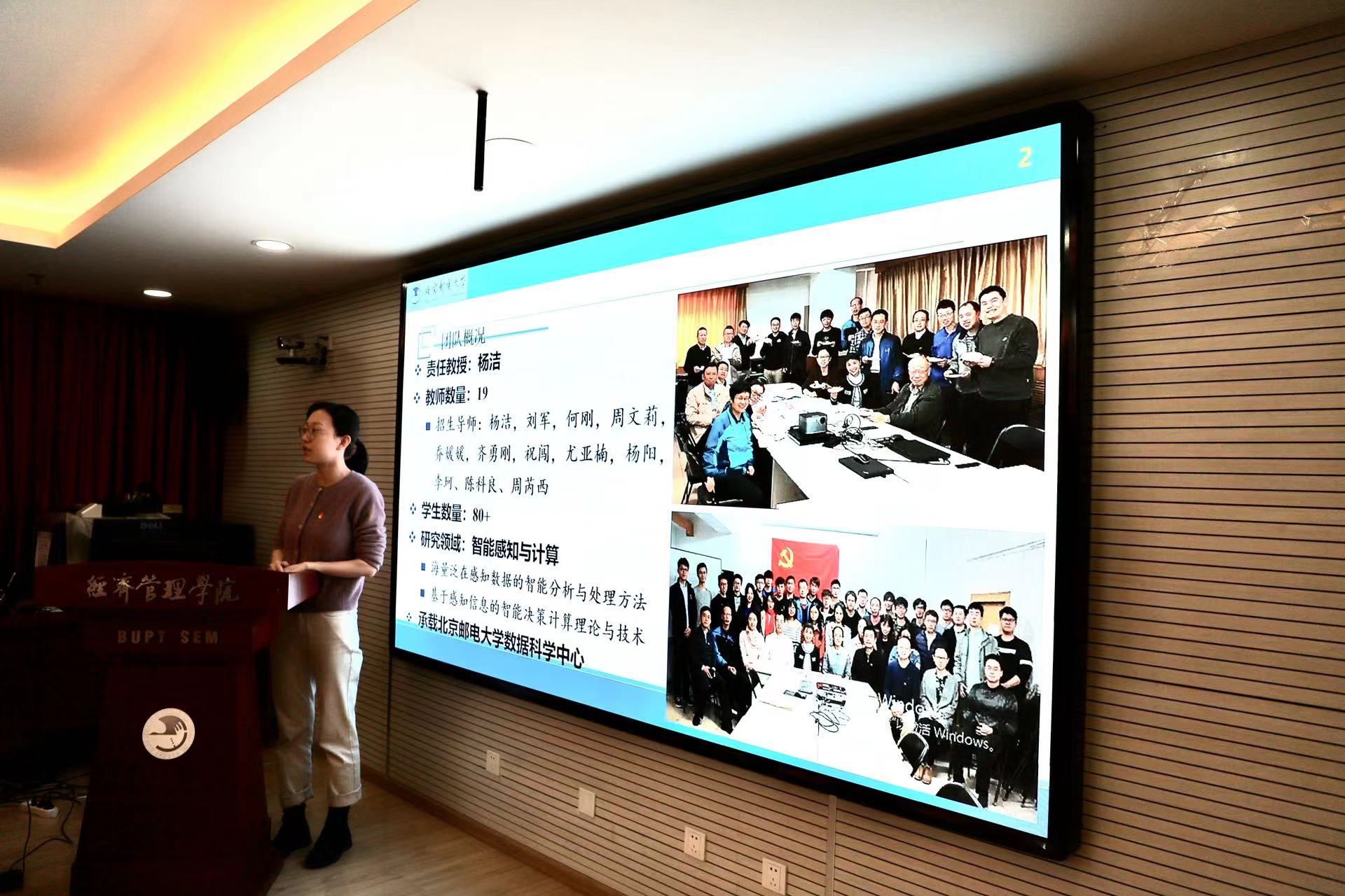随后,人工智能与网络搜索教研中心支委徐蔚然老师、管理科学与工程系支委刘娜老师、智能感知与计算教研中心党支部书记乔媛媛、公共管理系党支部书记李乐老师分别对各自支部的党建及科研团队情况进行了介绍。