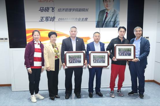 接着,2009级EMBA三位同学受邀上台为大家做简短交流。徐海洋同学回顾了自己在北邮的本科与硕士学习经历,分享了自己的创业职业发展历程和读书感悟,并表示重回北邮,是为了给自己打一个标记,重新整顿出发。韩庆达概括分享了自己最直观的三点读书感受,即结识更多牛人,受到创业鼓舞,保持跟随信息通讯新兴产业学习的决心。张亚宁结合自身实例,向大家阐述了自律与健康的重要性,告诫大家保重身体。分享完毕,王欢院长、吕廷杰老师、陈嫦娟校友为其颁发纪念品。紧跟着,学生分组向老师们送花敬礼、赠送纪念品。