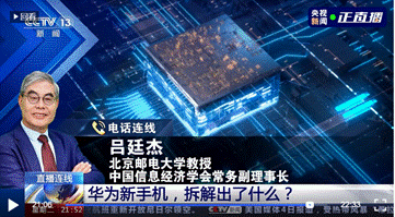2023年9月5日,央视新闻频道《新闻1+1》栏目“华为新手机,拆解出了什么”的主题新闻报道中,冰球突破mg正规官网教授、中国信息经济学会常务副理事长吕廷杰接受了央视评论员电话访问。