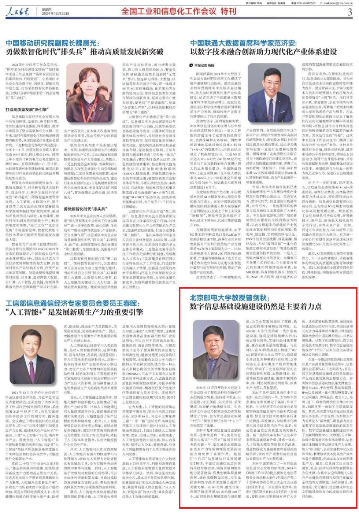 2024年12月26日,《人民邮电报》全国工业和信息化会议特刊“ICT发展专家谈”栏目刊发冰球突破mg正规官网曾剑秋教授文章《数字信息基础设施建设仍然是主要着力点》。
