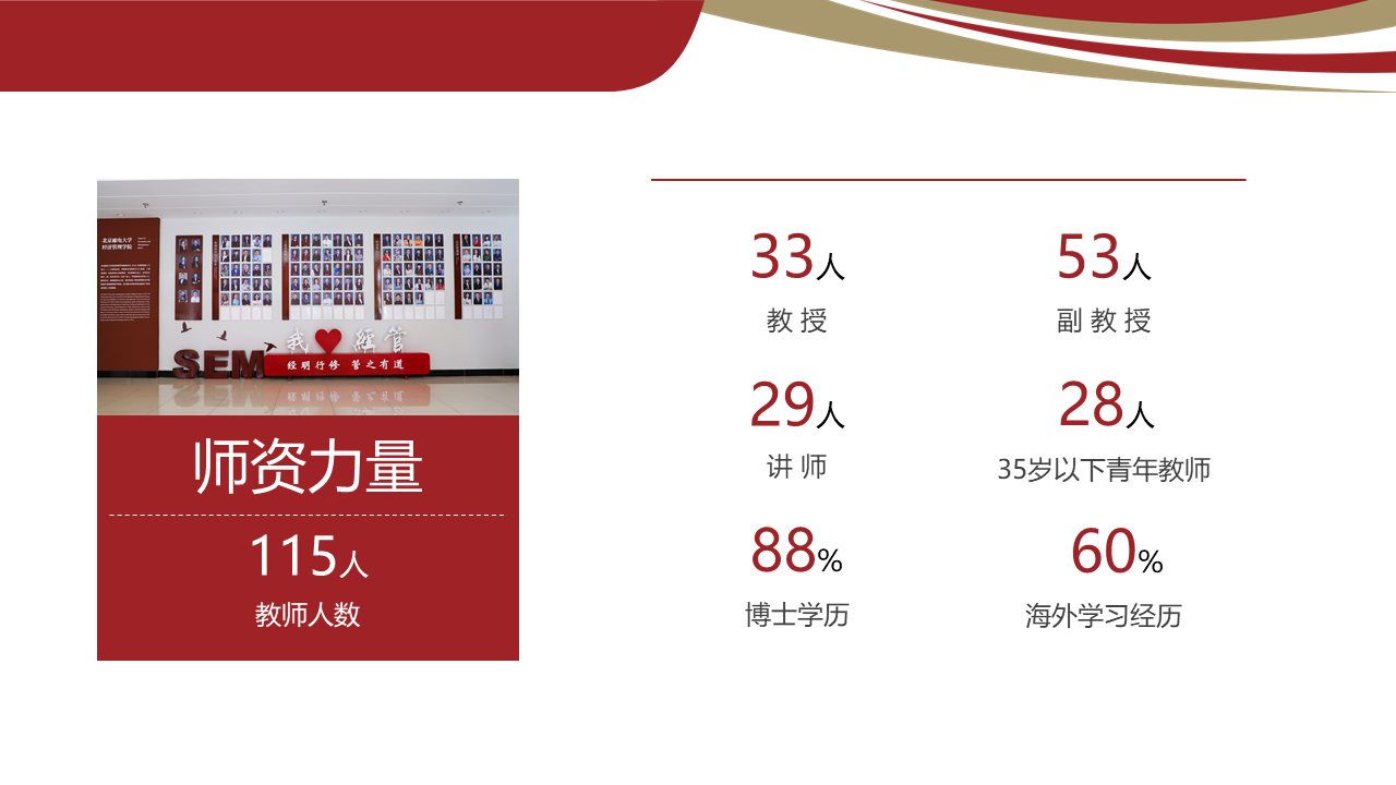 专任教师115人中具有高级职称88人,博士生导师27人,具有博士学历教师占88%,有60%教师有海外学习经历,形成了一支高水平教师队伍。