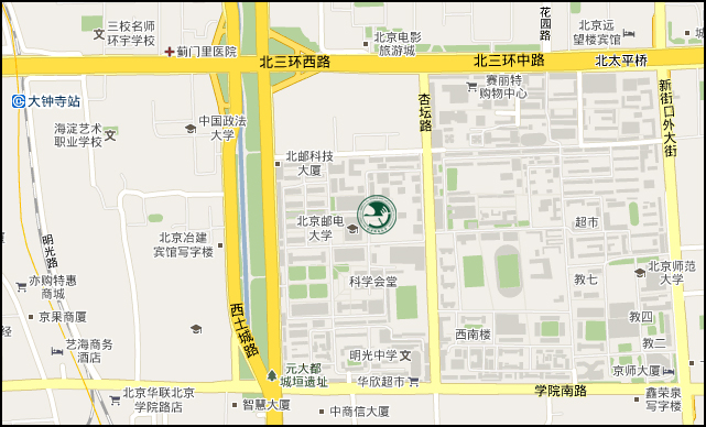 北邮东门:123路、300路、671路等在北太平桥西下车后西行300米至杏坛路再往南约200米。